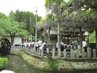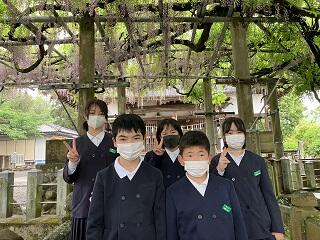 4月25日(火)、雨の合間を縫って山田神社に行きました。藤の花はまだ咲いていました。6年生は今までの感謝の気持ちを込めて、境内の掃除をしました。地域の人から、鯉のえさをいただいたので、みんなでえさやりもしました。鯉が水しぶきをあげて寄ってきました。