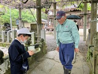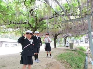 2年生の生活科の学習で山田神社に行きました。藤の樹の大きさや藤の花の美しさに子どもたちは喜んでいました。地域の方々の協力の下、安全に探検することができました。