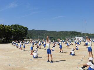 昨日の6校時に、5・6年生で運動会のよさこいソーランの練習を行いました。6年生は昨年度の経験を生かして、5年生に演技の仕方を丁寧に教えていました。