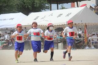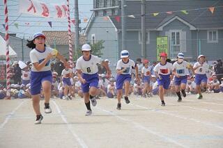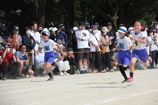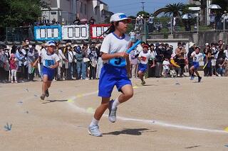 今回は、運動会の1年生の徒競走、6年生の全員リレー、4年生の全員リレーを掲載しています。力強い走りからたくましさが伝わってきます。