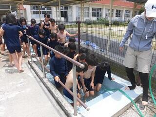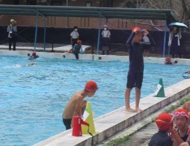 本日(6/15)、午前中に3・4年生それぞれプール開きが行われました。水泳での事故が起こらないよう、担任の先生の話をしっかり聞いて、守ることを誓いプールに入水していました。