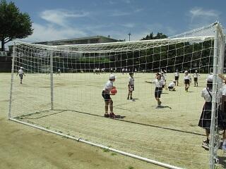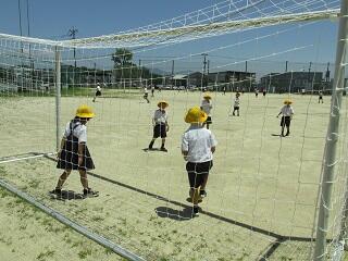 本日、運動場の大きなサッカーゴールに新しいネットが張られました。子どもたちも新しいネットに興奮しながら、サッカーを楽しんでいました。
