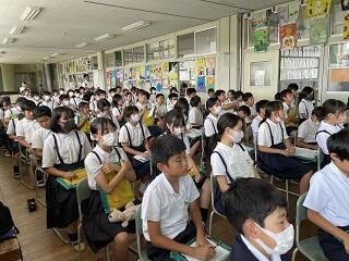 本日、夏休み前全校集会がオンラインで実施されました。校長先生と生徒指導の先生・保健の先生から夏休みの規則正しい生活についてお話しがあり、各学級でしっかりと聞くことができました。