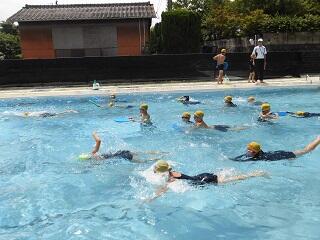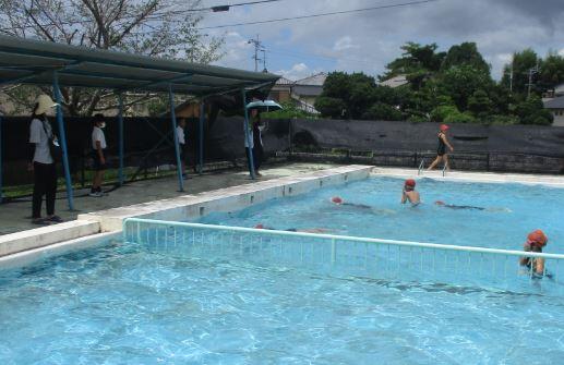 毎日暑い中に、子どもたちはプールでの水泳の授業をとても楽しみにしています。本日は、4年生が100メートルを目標に泳力調査を行いました。今まで学んできた泳法を活かし、がんばって泳いでいました。