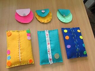本日、なかよし1組教室において松澤さんに講師としてきていただき、小物づくり(小物入れとポケットティッシュカバー)を作りました。子どもたちはそれぞれが工夫をし、すてきな作品ができました。