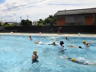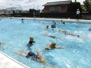 本日の午後から6年生によるプール開きが行われました。水泳の学習のきまりを教わった後、プールでは水泳が得意な児童による模範泳法もありました。全員でプールで泳ぐときはとても楽しそうでした。