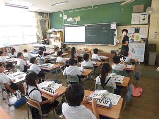 1年生の音楽の授業では、鍵盤ハーモニカを使っての演奏練習を頑張っていました。音階に気をつけながら、先生の指導に合わせ演奏する姿から大きな成長を感じました。