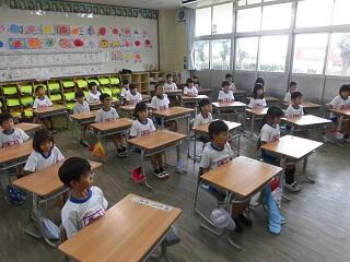 本日(5/19)、全校児童による運動会の全体練習が行われました。雨のため運動場では行えずオンライン視聴による教室での練習でしたが、開閉会式の流れをしっかり理解することができました。