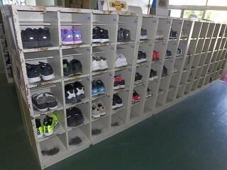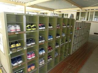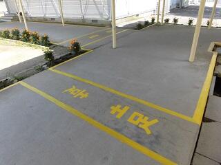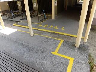 また、北校舎と南校舎の間とプレハブ校舎の渡り廊下には土足禁止のペンキ塗りも行いました。