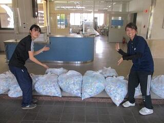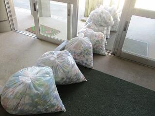 4月から7月まで、児童による環境ISO委員会のよびかけのもと、全校児童でペットボトルのふたを集めてきました。ふたはとてもたくさん集まり大きな袋に10個以上集まりました。夏休みに担当の先生によりリサイクルを行う企業に渡すことができました。