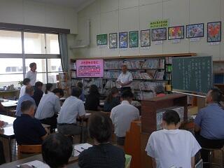本日、築山小学校校区の区長さん8名に来校してもらい築山小学校の現状を知っていただいたり、今後の築山小学校について話し合いが行われたりしました。