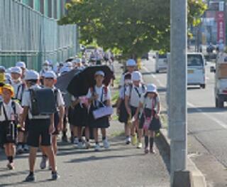 さっそく本日から熱中症にならないよう日傘を差して登校する児童が見られました。