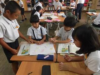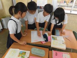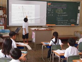 築山小学校では「学び合い学習」を積極的に行っており、全学級で指示棒を使っての全体発表や、付箋に書いた考えをグループでシートに貼り付け伝え合う学習などを行っておきます。