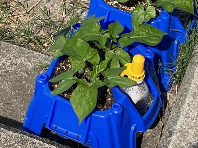 ご覧のように、鉢にはそれぞれペットボトルが備え付けられていて、水分補給ができるようになっていますが、連日の晴天のため、子供たちは朝から念入りに水やりもがんばっています。