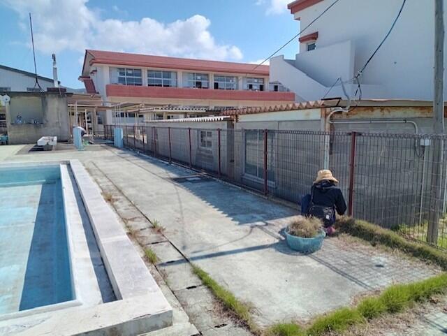 約10カ月放置されていたプールは、汚れが底にたまっており、なかなかの状態でした。また、プールサイドにはたくさんの草も生えていて…