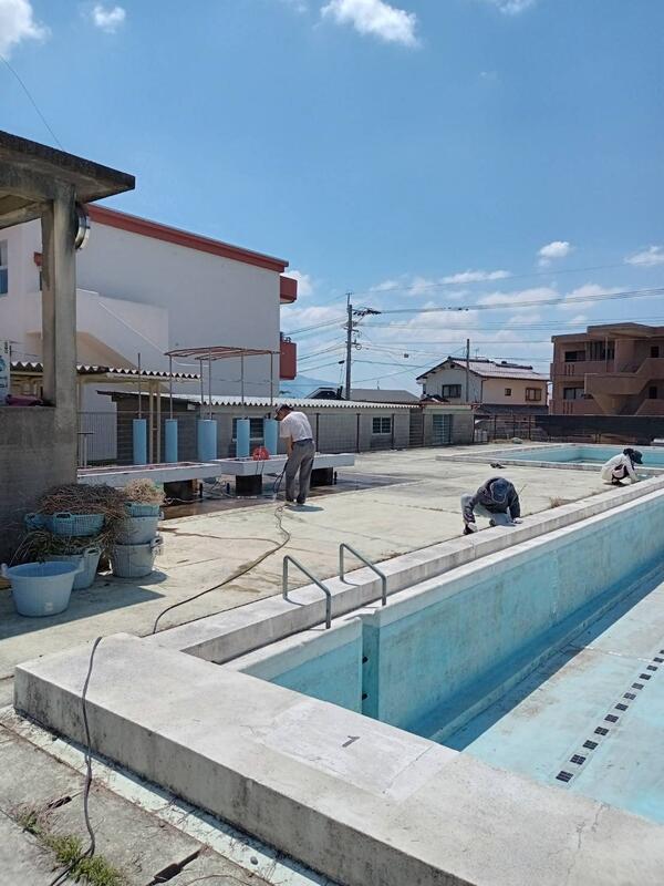 先週、プール掃除を5,6年生ががんばってくれたことをお伝えしていましたが、今日は、地域のボランティアの方々が、最後の仕上げを引き受けてくださいました。