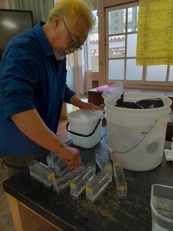 たくさんのメダカやその卵を寄贈してくださいました。子供たちも大切に育てていくことでしょう。