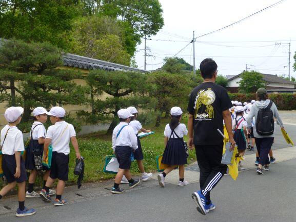 今回は、3組の子供たちがボランティアの方々に見守られて徒歩で行ってきました。