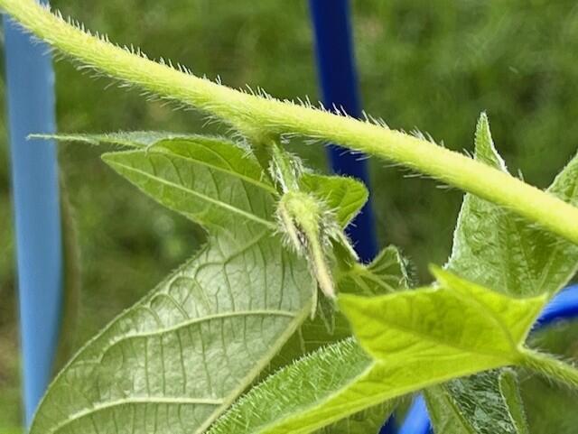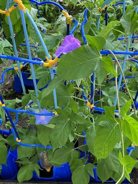 ずいぶんとつるが伸びていました。支柱よりも高くなっていたり、枠から飛び出していたり、とても元気に育っていました。