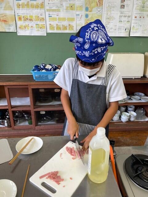 6年生が、家庭科調理実習を行いました。今回は野菜炒め「いろどりいため」です。