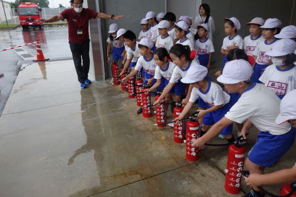 子供たちは、水消火器の練習もさせていただき大満足でした!