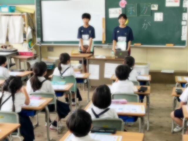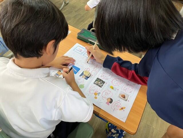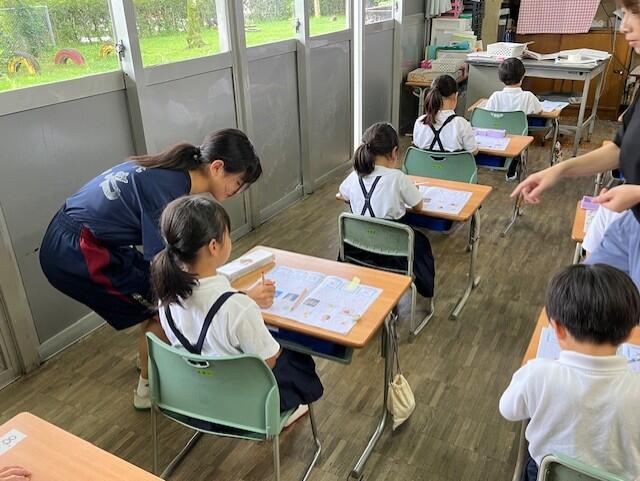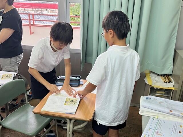 各教室では、丸つけを中心に1年生の学びをサポートしていました。休み時間は大人気!たくさんの子供たちが周りに集まっていました。
