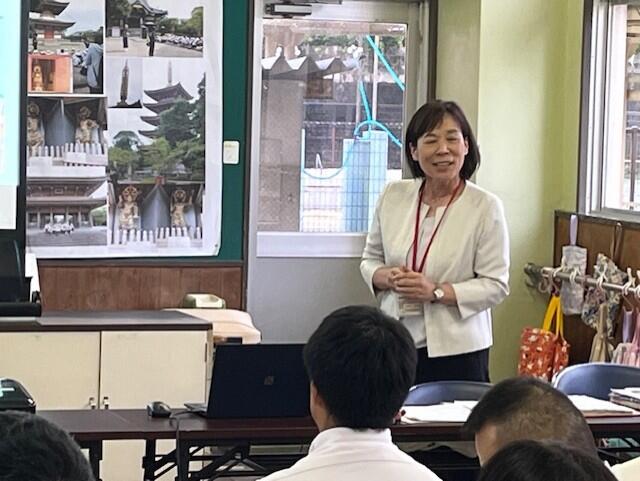 現地では、ご住職の方の話を聞きながら、熱心にメモを取る姿や迫力ある五重塔・四天王像を間近で見学する姿が印象的でした。