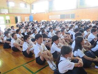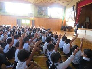 午後からくまもと障害者労働センターの倉田哲也さんをお招きして、4~6年生に人権教育の講演会を行いました。倉田さんの生い立ちや願いを聞き、自分や周りの人を大切にする心についてしっかり学んでいました。
