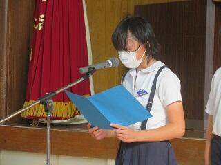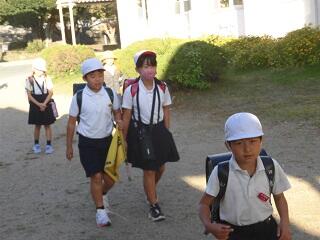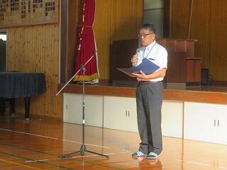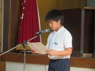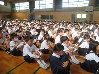 本日の朝から各学年を2つに分けて、3学年ずつの後期始業式が行われました。前期の終業式同様に落ち着いた態度で参加し、5名の児童が代表で後期のめあてを発表できました。