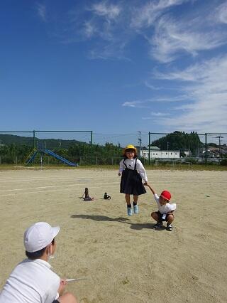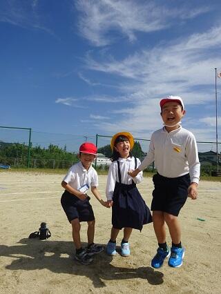 なかよし6組の児童は、国語の物語「くじらぐも」で学習したことをもとに、運動場で実際に動作化を行いました。友達と手をつなぎ、ひざを曲げ、青空にうかぶクジラ雲にとどくよう一緒にジャンプしました。とても清々しい気持ちになりました。
