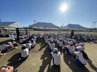 本日、4年ぶりに第12回玉名市陸上記録会が実施されました。5・6年生が3週間練習をしてきた陸上競技(走、跳、投)の成果を出し切り、たくさんの自己新記録を出すことができました。テントから友達を応援する態度もとても立派でした。