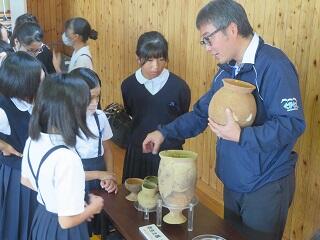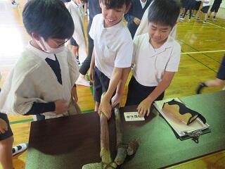 5年生は、熊本県教育庁文化課員の方たちに来校いただき、熊本県の文化財の歴史や復旧への取組について学びました。文化財に関する仕事をされている方たちの思いや願いを知り、守り受け継いでいくことの大切さを学びました。