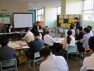 本日、6年1組で人権学習を行われました。登場人物の姿を通して自分自身や家族、友達との関わり方について見つめ仲間づくりについて学び合いました。事後研修会には、玉名市内小中学校から30名以上の先生と授業について話し合いました。