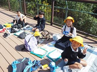 集団宿泊教室の2日目の午前中は、グループごとに分かれてのペーロン船の体験活動を行いました。仲間と櫂(かい)をこぎ、心をそろえる大切さを学びました。その後は、みんなで野外での昼食です。