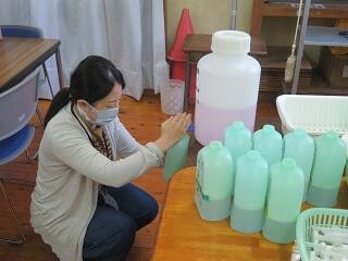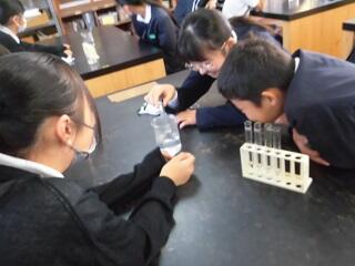 炭酸水に溶けているもの(気体)はなんなのか、グループごとに実験をしながら発見していました。