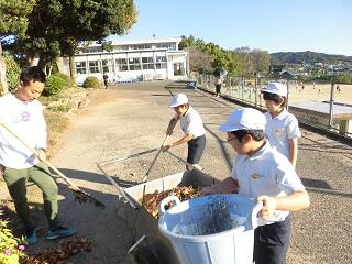 季節は秋となり校庭の木々の枯れ葉が地面に落ちています。朝からは落ち葉拾いボランティアの児童が集まり、校庭をきれいに掃き掃除してくれています。学校のために行動できる姿は素晴らしいです。