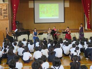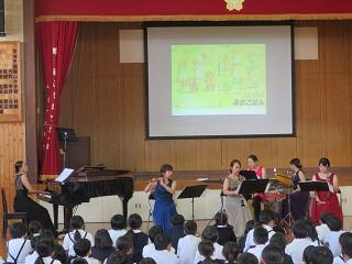 本日、樂奏団ゆめのねいろの方に来校していただき、音楽アウトリーチ事業が行われました。木管楽器を中心としたアンサンブルの音色に3・4年生も癒やされうっとりしていました。
