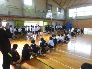 本日の5校時に、11月1日~2日にあしきた青少年の家での集団宿泊教室にいく5年生の学年集会が行われました。引率する先生たちから集団行動の意義や2日間の日程等について、確認を行っていました。
