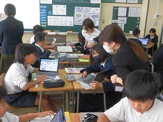 本日、ICT支援員である藤井先生のもと、3年生ではタブレットを使ってのローマ字入力の練習が行われました。ローマ字入力のきまりや約束を守って、少しずつ入力が早くなっていました。