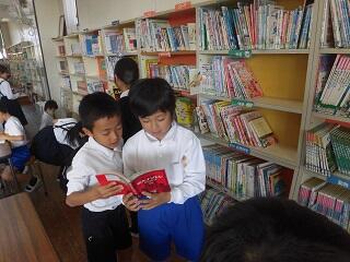 4年生は読書の秋に、図書室でたくさんの本に触れ合っていました。友達と一緒に読みたい本を選んだり、興味ある本を発見したりとゆったりした時間を過ごしていました。