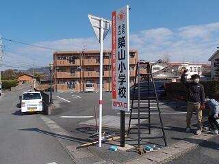 本日、築山小学校の正門と西門に校名の入った看板が2カ所設置されました。正門は黄緑色で、西門は橙色がイメージーカラーとなっています。学校のシンボルとして大切にしていきます。