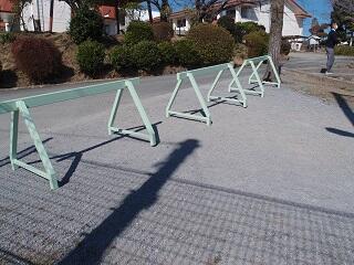 正門側に、運動場と歩道との間を仕切る新しいバリケートが三カ所設置されました。自動車や自転車などが入らないよう、運動場を大切に使っていきます。