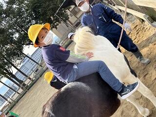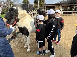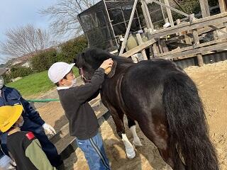 3月1日(水)なかよし3・4・5組の子どもたちが楽しみにしていたポニー公園へ行きました。ヤギやうさぎ、モルモット、ポニーなどの動物と触れ合いました。貴重なえさやり体験や乗馬体験をさせていただきました。子どもたちは、大きな動物に怖がりながら、始終笑顔で楽しい時間でした。