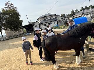 2月28日(火) なかよし1・2組の子どもたちが、楽しみにしていたポニー公園への見学。青いお目々のマーチとスプリングに乗りました。うさぎとモルモットの食欲にはみんなで大笑い。やぎのハートとメイちゃんとの散歩も楽しかったです。