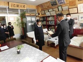 今日は、冬休み前の後期前半の最後の日でした。朝から、オンライン集会を実施しました。内容は、まず、校長先生からの子供たちの成長の様子を認めていただきました。次に生徒指導担当から、休み中のしてほしくない行動や自転車の乗り方について話がありました。最後は、養護教諭より生活のリズム、メディアとの付き合い方、バランスの良い食事、歯の治療推進、感染対策の5点について話がありました。約2週間の冬休みが安全で健康な生活になってくれることを願ってます。