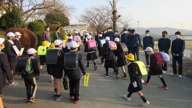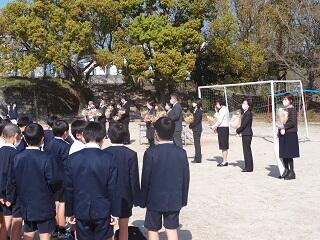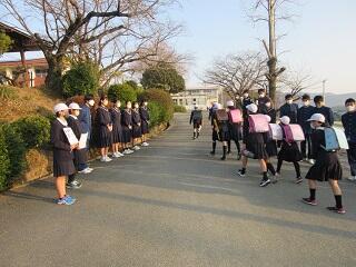 3月8日(水)朝、玉名中学校区小中連携あいさつ運動が行われました。本校の卒業生である玉名中学校の生徒さんと本校の企画委員と生活委員に希望者が加わりました。気持ちの良い挨拶が響いてました。参加してくれた皆さん大変ありがとうございました。