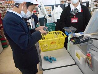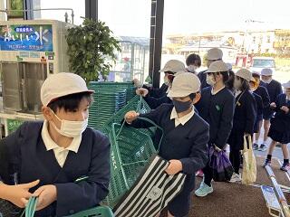 なかよし1・2組の児童はマルエイに行き、買い物体験学習をしました。お家の人に頼まれた物と好きなお菓子を選び、自分でお金を払いました。