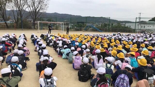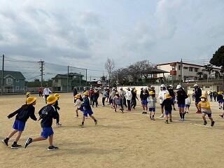 現在、子供達は、持久走大会へ向けて毎日練習に励んでいます。その際、地域の方による見守りボランティアの協力で、学校周辺の実際のコースを走ることができています。大変ありがとうございます。写真は、11月30日(水)の1・2年生の合同体育の様子です。