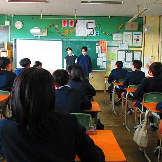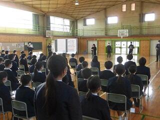今日のオンライン集会は、保健委員会による発表でした。コロナ予防のための感染対策について、詳しく説明し呼びかけをしてくれました。最近じわじわ感染者が増えてきています。感染対策を徹底して、予防しましょう。写真は、1年3組と2組の様子です。