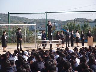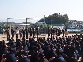 本日(28日) 築山小学校の運動場で退任式が行われました。18名の先生方が退職・転任されます。子どもたちもお世話になった先生方に、しっかり感謝の言葉と気持ちを伝えていました。
